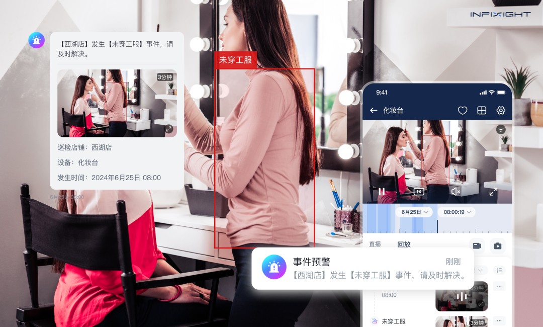 在美妆行业,员工的形象就是品牌的名片。品牌 M 要求员工必须穿着统一的工服,并佩戴口罩,尤其是在提供美容 SPA 服务时。然而,传统的人工检查方式往往力不从心。