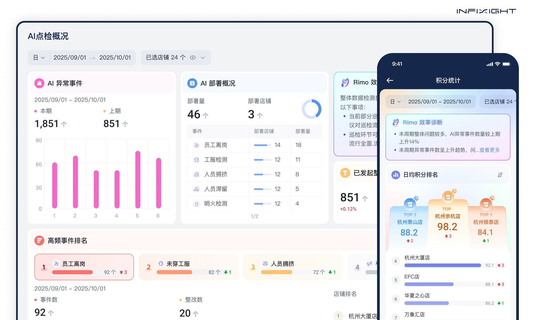 2.解放人力,聚焦服务。 “我们之前不知道迎宾有没有在岗,现在通过 AI 巡检系统,每天只要离岗,马上后台系统会告警。”AI 的工服工帽识别、离岗检测等能力将管理者从繁琐的「盯人」事务中解放出来,让他们能更专注于提升顾客体验。它不再是冷冰冰的监控,而是确保服务团队始终在岗、在状态的「协作者」。